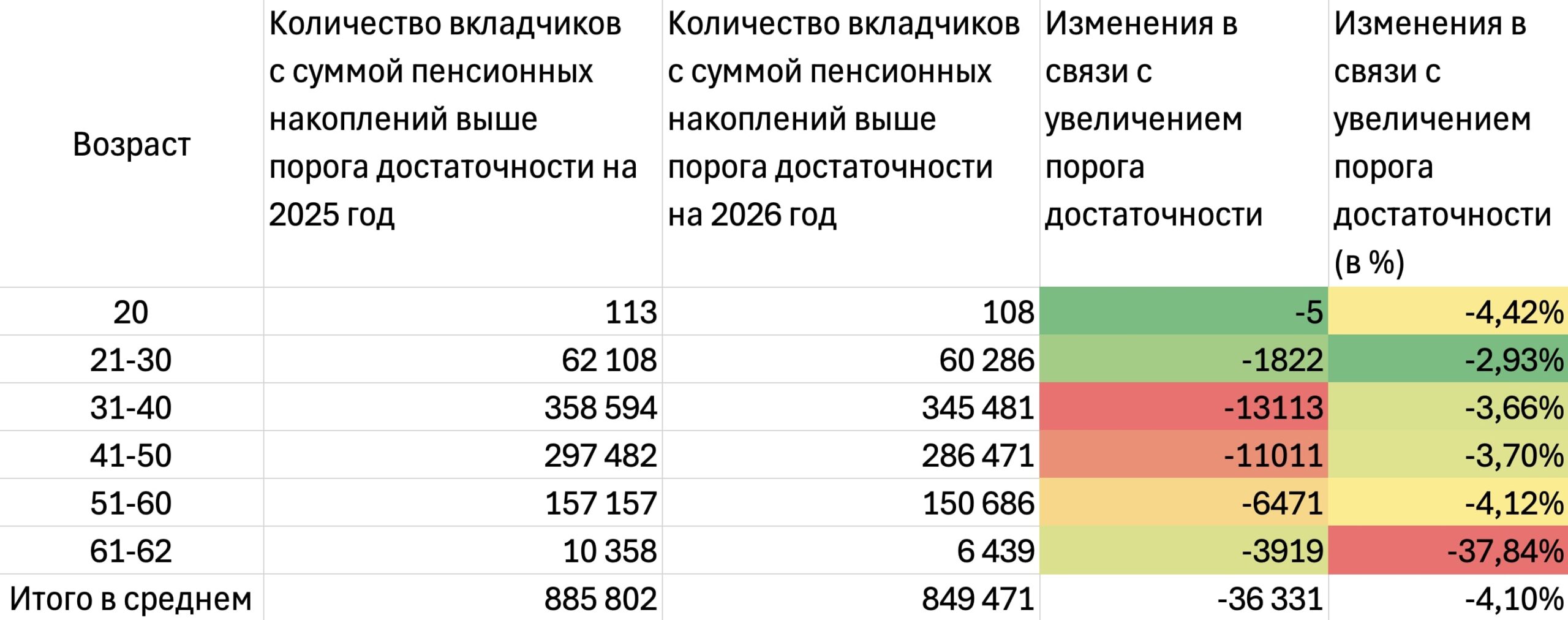 Напомним, с 2026 года пороги минимальной достаточности, сверх которых можно снимать пенсионные, повысили в среднем на 10%.