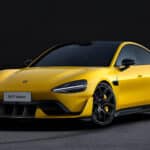 Внешне машина выглядит максимально агрессивно. Зеленый кузов щедро приправлен карбоном, есть массивное фиксированное антикрыло, двухуровневый диффузор, узкие L-образные фары и шестиспицевые диски с желтыми тормозными суппортами. Дверных ручек нет вовсе – решение эффектное, но спорное с учетом новых китайских правил.
