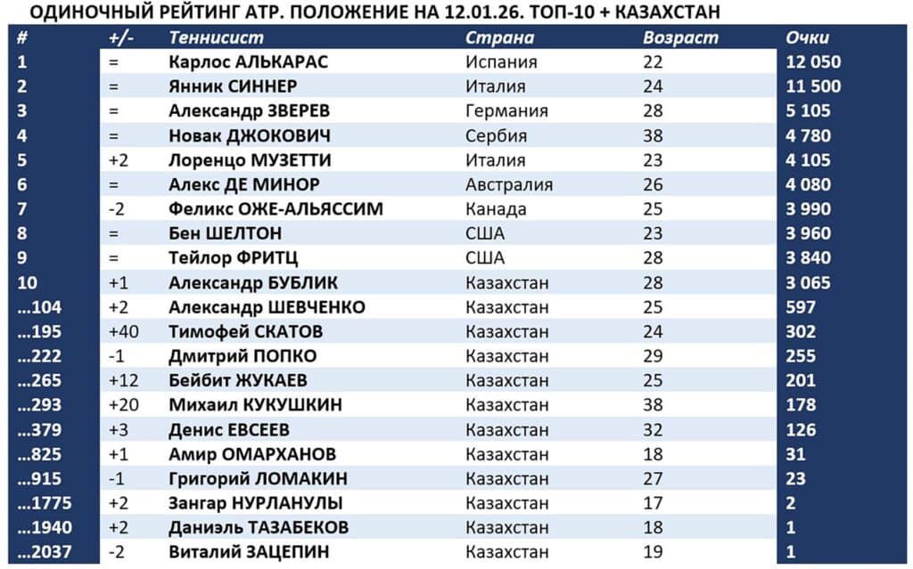Поднявшись на одну ступень, 28-летний уроженец Гатчины, с 2016 года выступающий за Казахстан, вытеснил из топ-10 Джека Дрейпера. Того самого, которого обыграл в 1/8 финала «Ролан Гаррос-2025». На предстоящем Australian Open (АО-2026) Бублик будет посеян десятым.