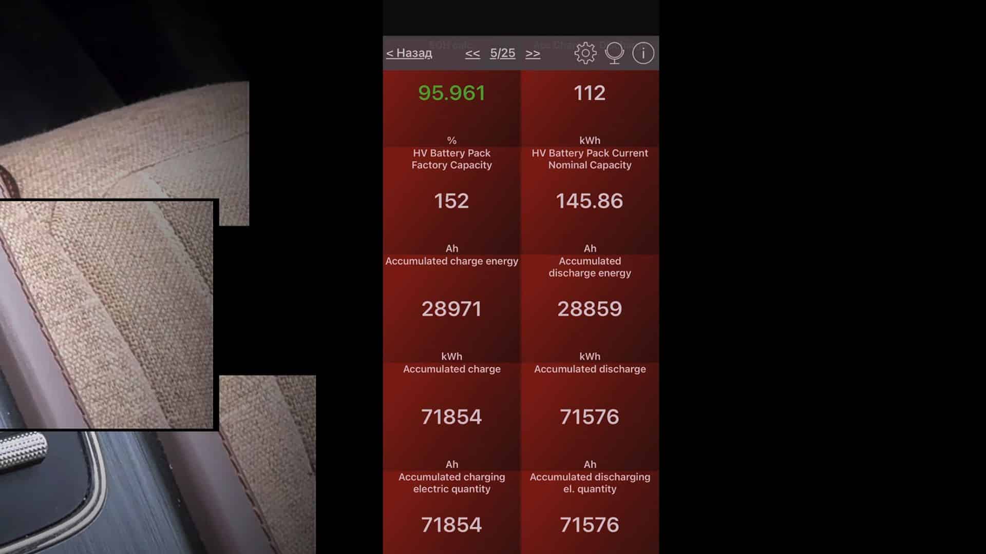Главным открытием стала проверка деградации аккумулятора через программу CarScanner. После 100 тыс. км пробега и ежедневных зарядок емкость батареи снизилась лишь на 4%.