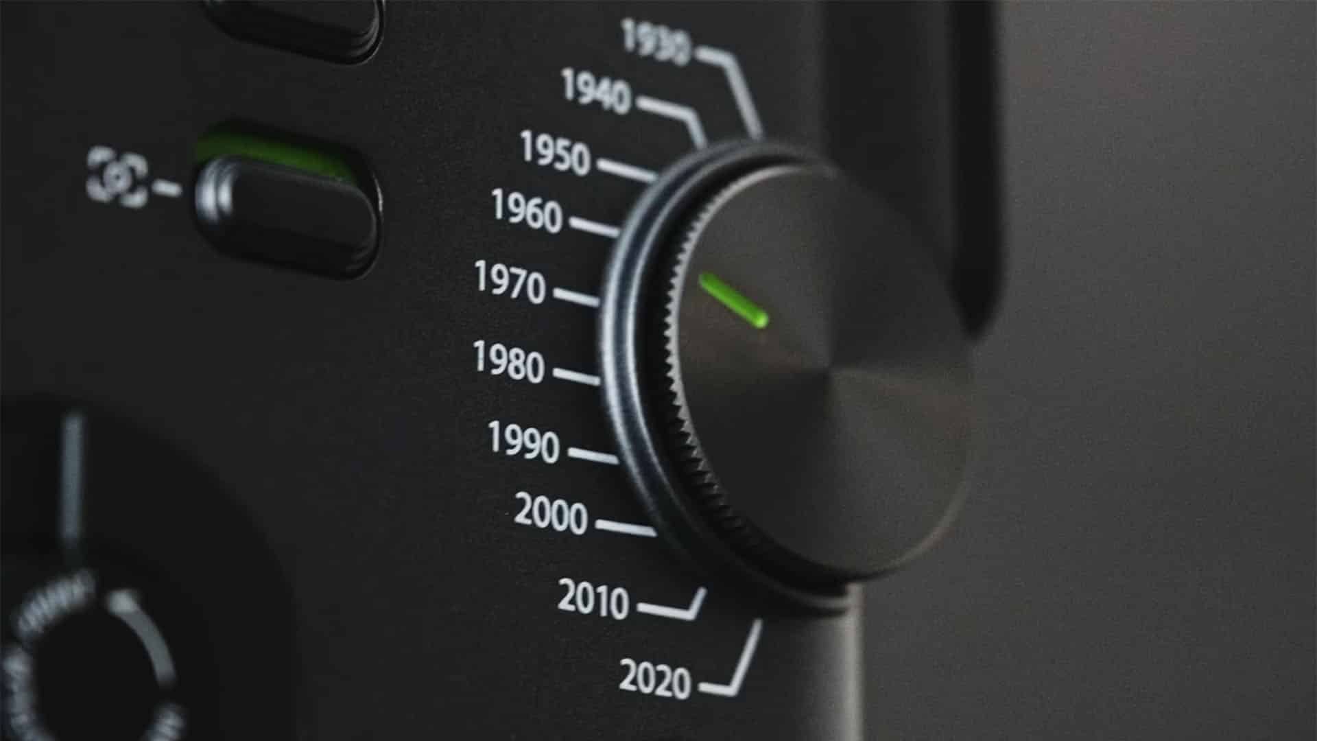 Одна из ключевых фишек камеры — это набор визуальных эффектов. Они стилизуют изображение под разные эпохи, от 1930-х до 2020-х годов, для этого на корпусе камеры есть специальный ползунок. Фильтры дополняются звуковыми эффектами, например имитацией шума кинопленки, и имеют несколько уровней интенсивности.