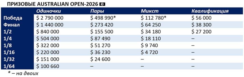 Матчи основной сетки 114-го по счету Аustralian Open пройдут в Мельбурне с 18 января по 1 февраля. Общий призовой фонд первого турнира «Большого шлема» в 2026 году ($74,8 млн) вырос на 16%. Помимо пяти основных разрядов, в рамках турнира соревнуются ветераны, юниоры и теннисисты-колясочники.