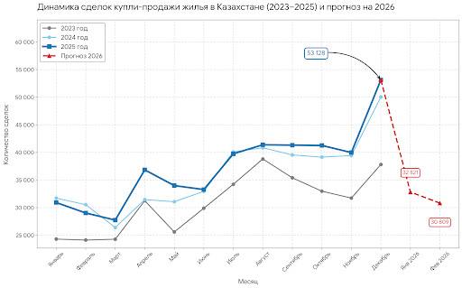 В декабре 2025 года рынок недвижимости в Казахстане пережил всплеск активности, число сделок достигло максимума за последние три года, сообщает автор Telegram-канала «Комментарий», экономист Эльдар Шамсутдинов.