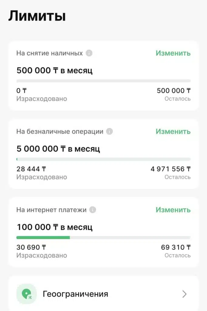 2. Лимит на безналичные операции