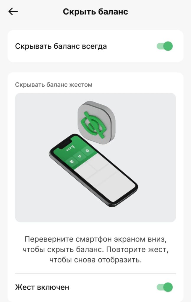 Другой способ скрыть ваш баланс — это, находясь в приложении, перевернуть телефон экраном вниз, предварительно настроив режим жестов: