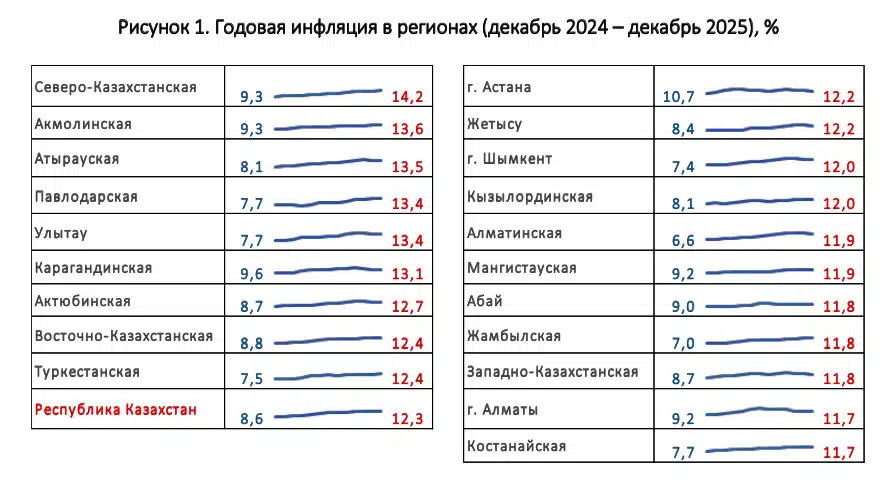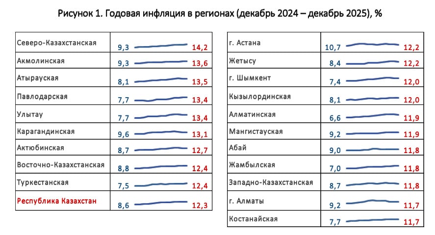 В месячном выражении инфляция по стране в декабре ускорилась до 0,9%. Это указывает на сохраняющееся ценовое давление, несмотря на локальное замедление годовых показателей.