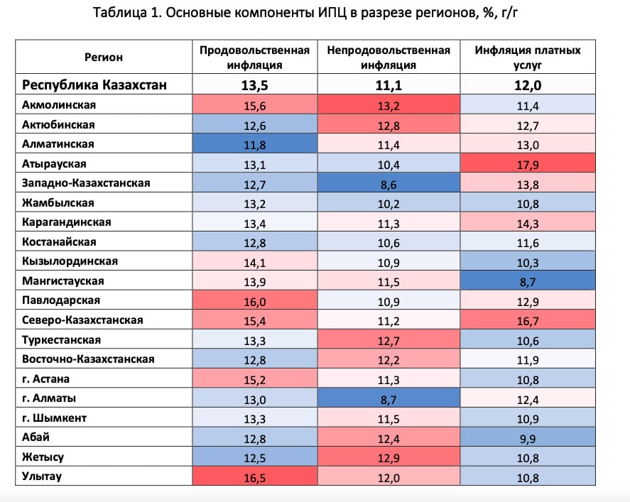 Замедление инфляции зафиксировали сразу в 10 регионах страны, однако в семи областях инфляция, напротив, ускорилась, а еще в трех осталась на прежнем уровне, сообщает Национальный банк.