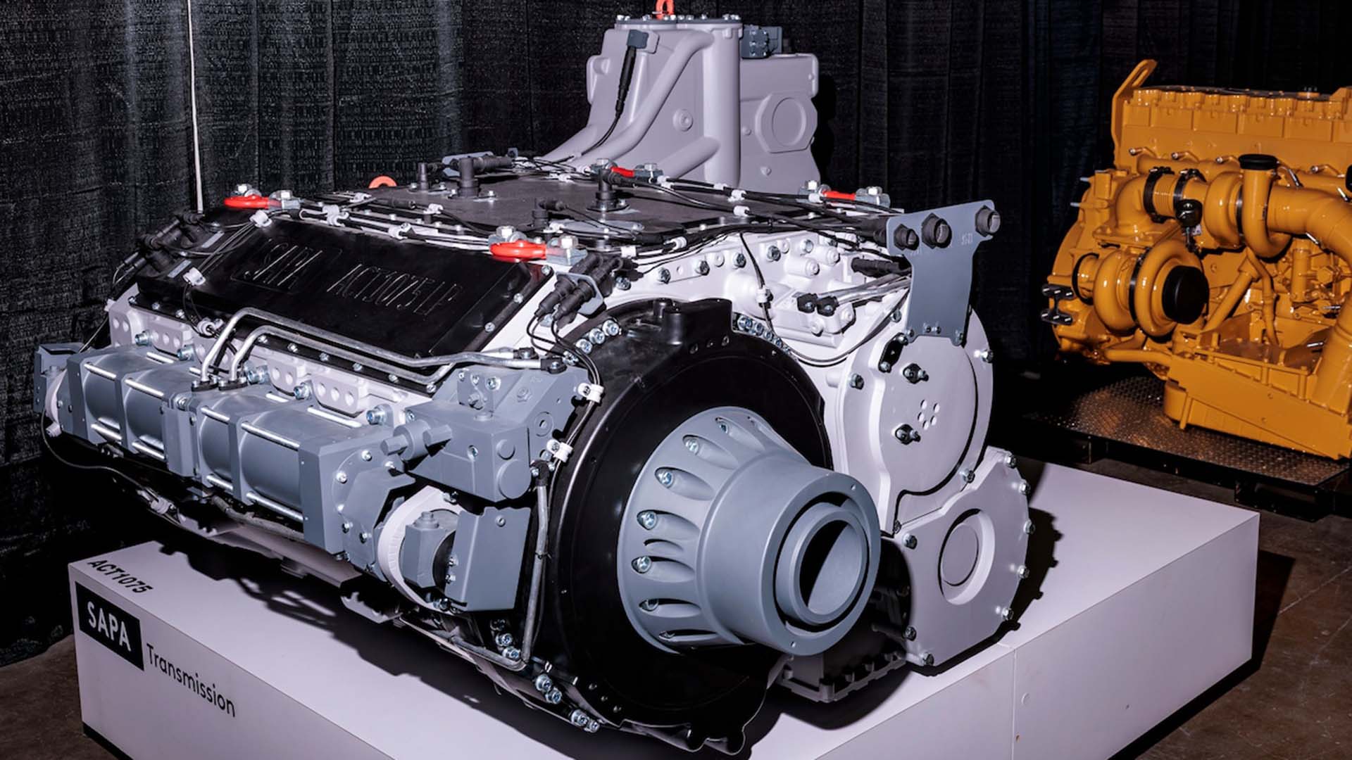 Новый M1E3 отказывается от традиционной газовой турбины в пользу дизельного двигателя в связке с электрической частью. Рядом с танком отдельно показали коммерческий дизель и новую трансмиссию SAPA – акцент сделан на тяге и снижении потерь.