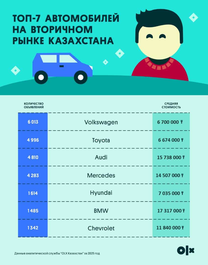 2025 год подтвердил, что рынок авто с пробегом в Казахстане живее всех живых. Пока новые машины дорожают, а кредиты ограничивают бюджет, многие по-прежнему идут за автомобилем на «вторичку». OLX Казахстан подвел итоги года и показал, какие бренды интересовали людей, где активнее всего проходили сделки и как изменилось поведение покупателей.