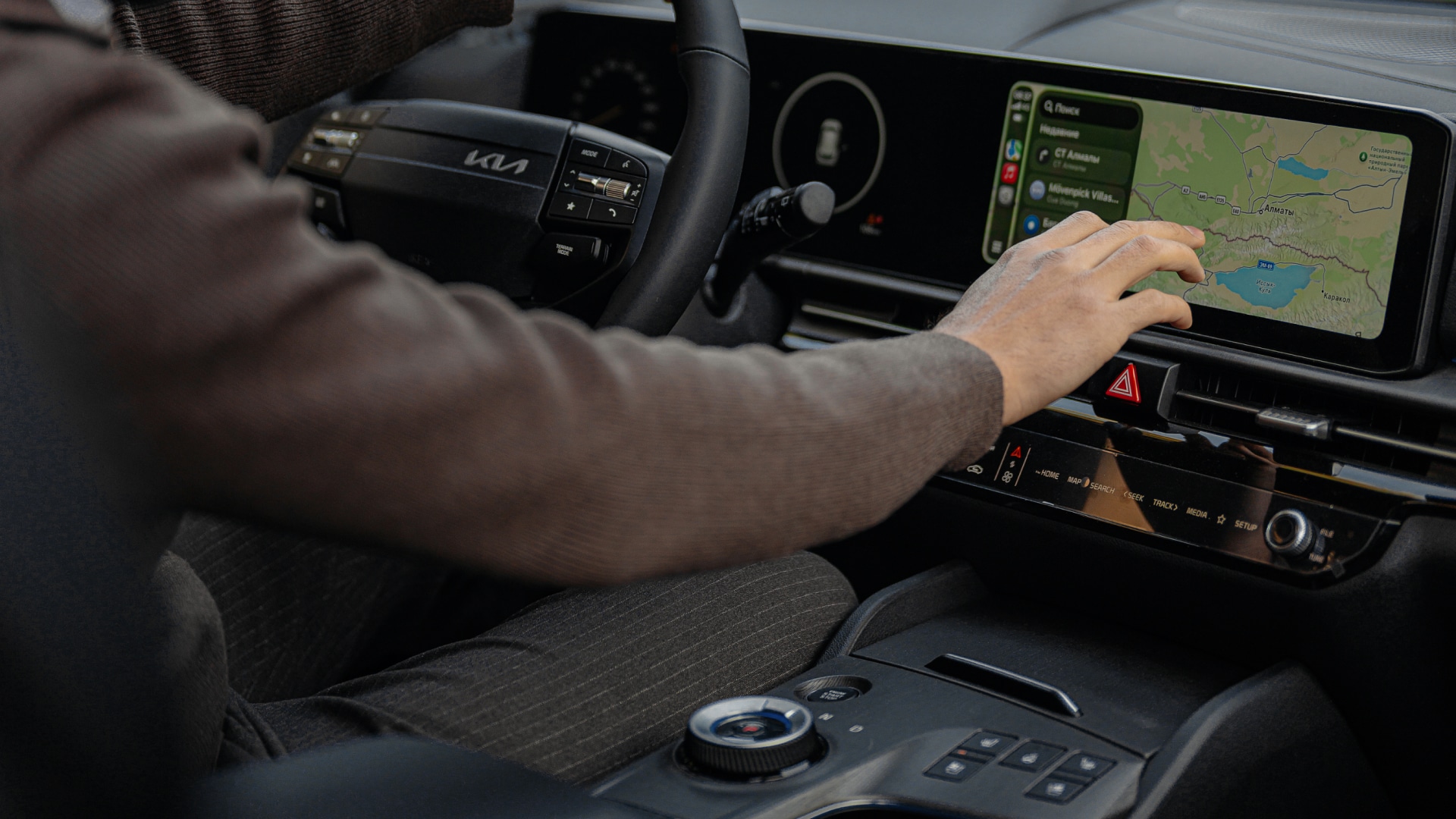 Изогнутый панорамный дисплей объединяет цифровую приборку и экран мультимедиа (по 12,3 дюйма). Система поддерживает казахский язык.
