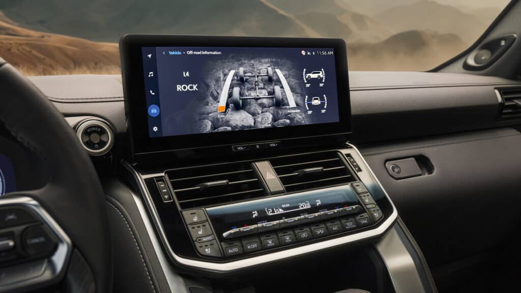 Даже базовая VX уже богато оснащена: цифровая приборка, большой экран мультимедиа, премиальная аудиосистема JBL, четырехзонный климат и ассистенты для оффроуда.