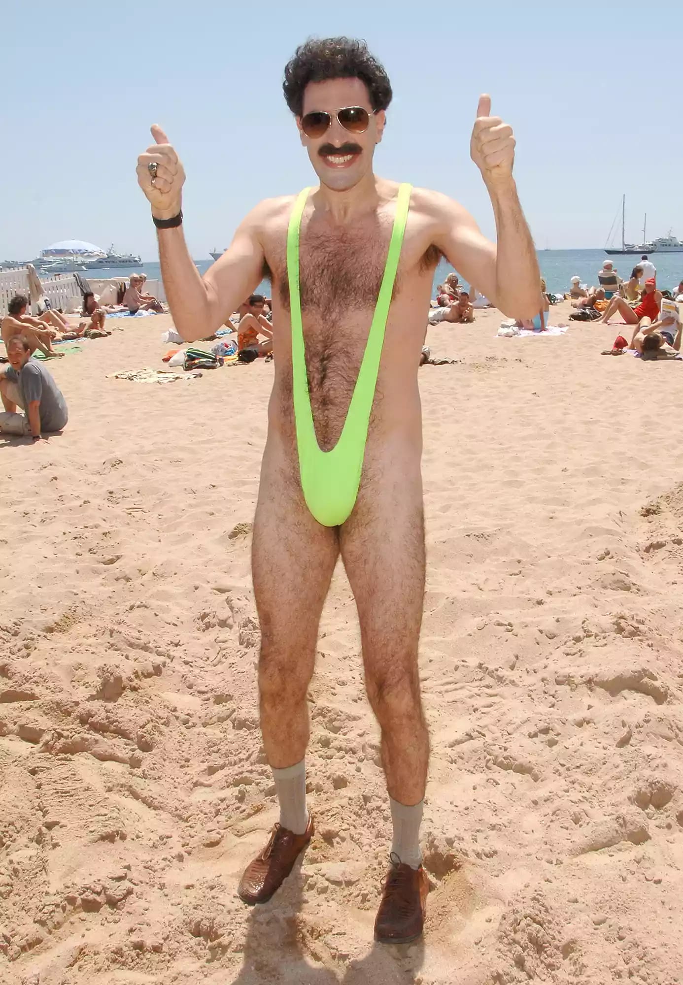 Борат — это сатирический персонаж, созданный британским актером Сашей Бароном Коэном. По сюжету фильмов он якобы родом из Казахстана. Одним из самых запоминающихся образов героя был тот самый зеленый купальник, давно ставший интернет-мемом.