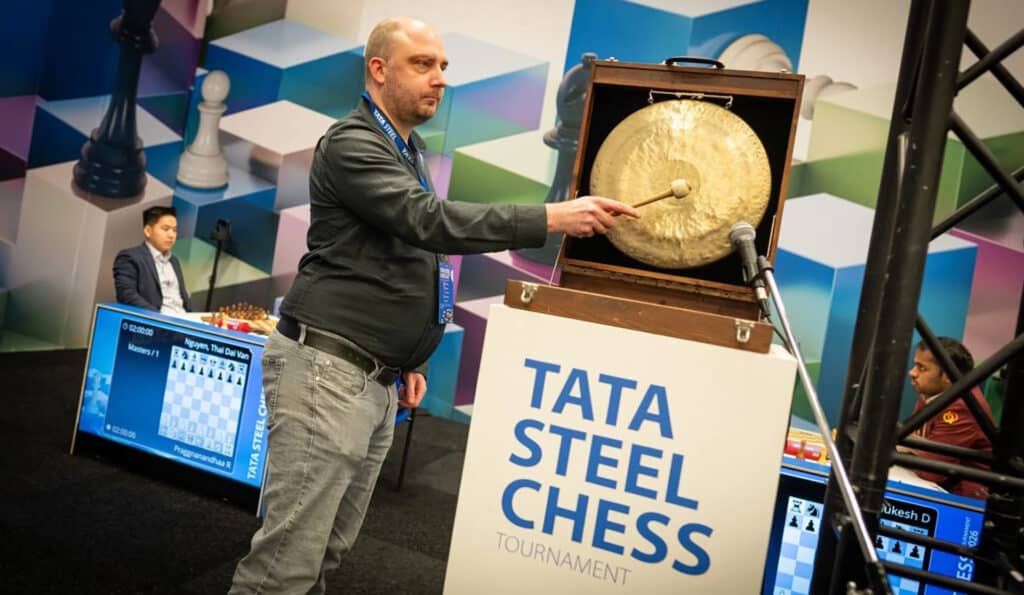 Каждый тур на турнире в Вейк-ан-Зее начинается с удара в гонг / Фото: tatasteelchess.com