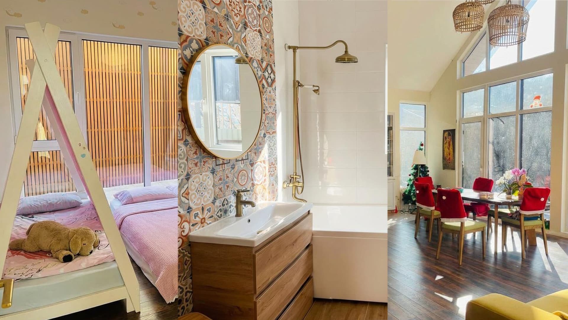 Трехэтажный дом на 250 квадратов, с панорамными окнами и светлой гостиной выставили за 120 млн тенге. Он выглядит современно и очень светло. На фотографиях можно увидеть просторную гостиную в высокими потолками и панорамными окнами в пол. Много дневного света, вид на деревья и ощущение воздуха, чего часто не хватает в городе. Интерьер спокойный, в теплых оттенках — много дерева, светлые стены и аккуратная мебель без перегруза деталями.