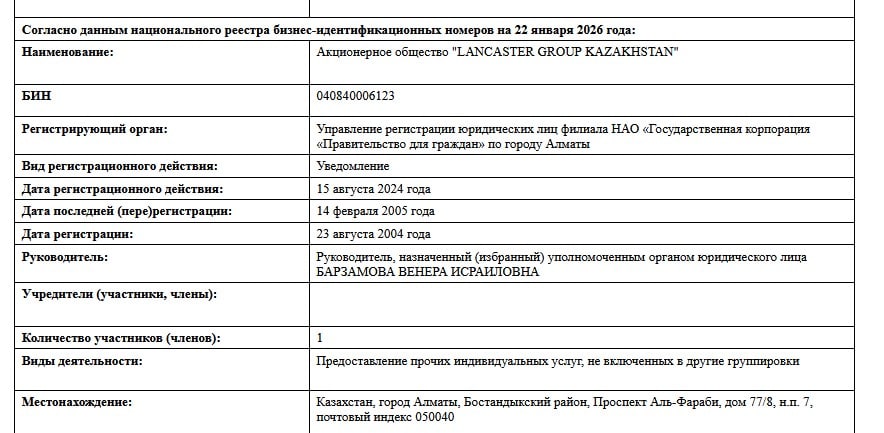 Учредители — Русланова Саида Лениншиловна, Сапарбеков Чингиз Булатович (он же генеральный директор компании) и ТОО «INKAR» (учредители: Еримбетова Алия Джайдаковна и Баймагамбетов Алибек Каппарович).
