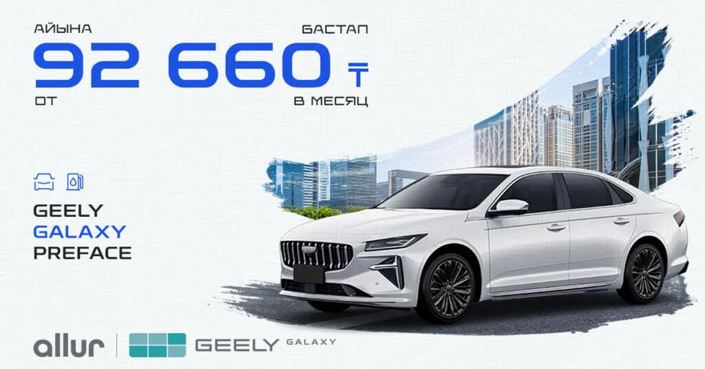 Geely Galaxy предлагает автомобили в рассрочку от 85 тысяч тенге в месяц