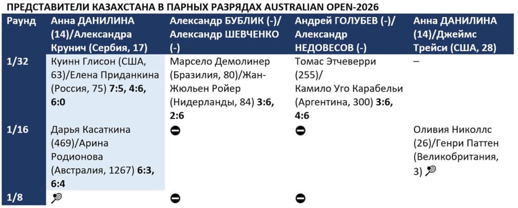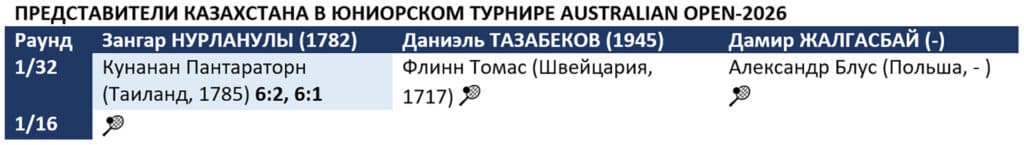 Казахстанские юноши примут участие и в парном разряде, турнирная сетка которого будет обнародована позже. Наши девушки в юниорском АО-2026 не играют.