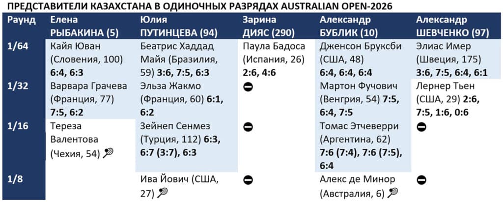 Борьбу в Мельбурне продолжают Елена Рыбакина, Юлия Путинцева, Александр Бублик и Анна Данилина (в паре и миксте).