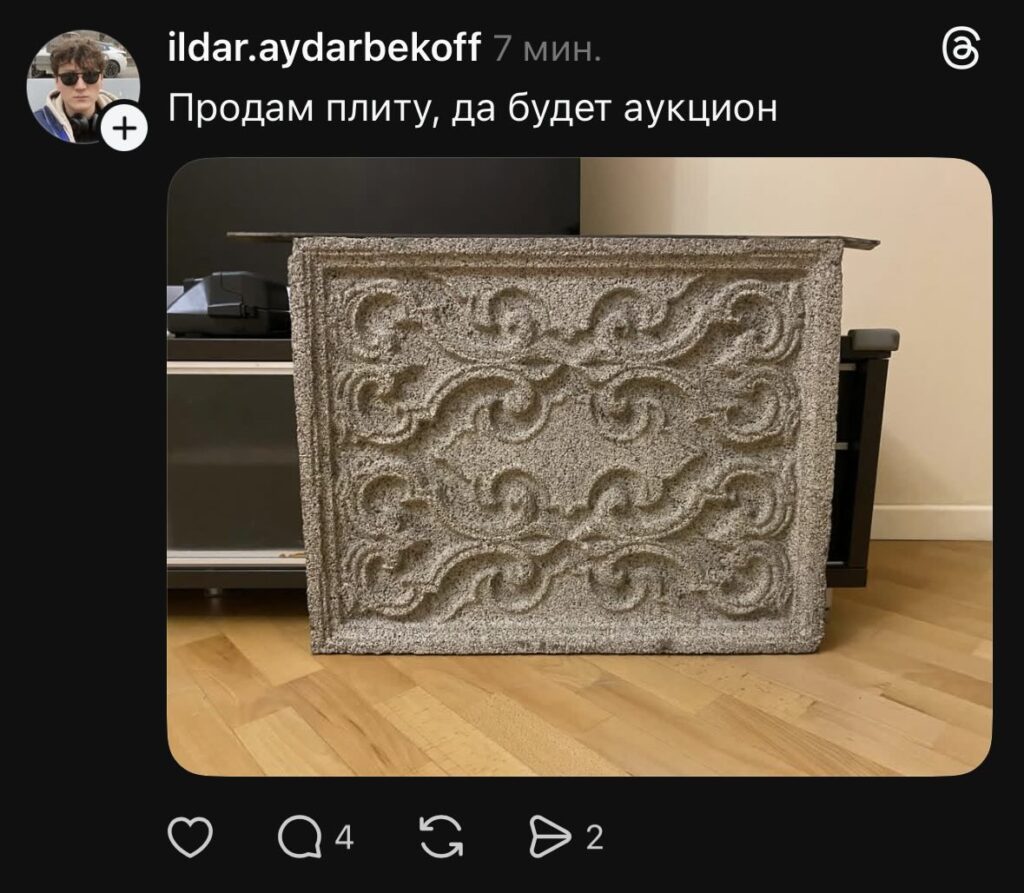 В Threads разгорелась забавная история вокруг декоративной плиты возле одного из баров Алматы.