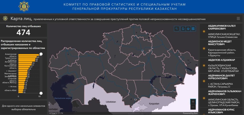 В Казахстане находятся на официальном учете за преступления против половой неприкосновенности несовершеннолетних 474 человека. Такие данные представлены на интерактивной карте Генпрокуратуры, которая отражает число лиц, отбывших наказание, и их место проживания.