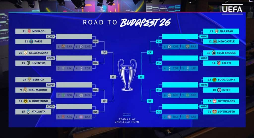 После завершения общего этапа турнира восемь лучших команд («Арсенал», «Бавария», «Ливерпуль», «Тоттенхэм», «Челси», «Спортинг» и «Манчестер Сити») напрямую вышли в 1/8 финала.