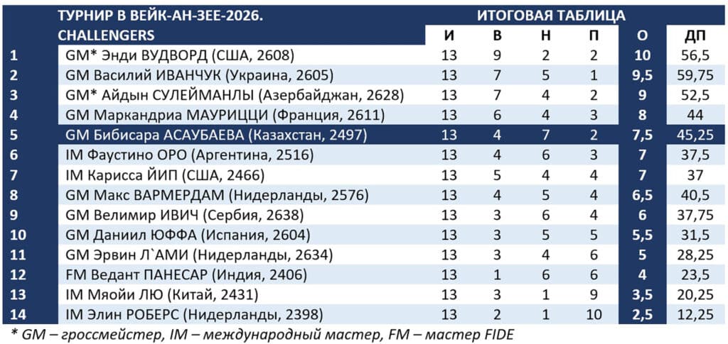 Абдусатторов и Вудворд победили в Вейк-ан-Зее, Бибисара Асаубаева – в топ-5