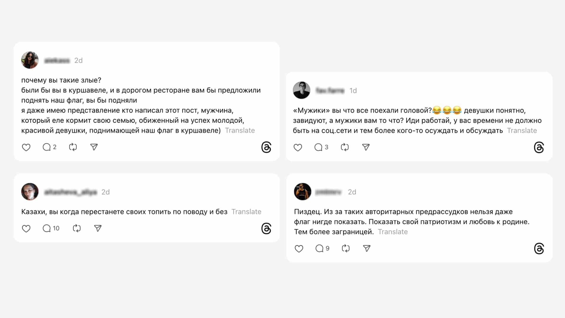 Поводом для активных дискуссий стал пост одного пользователя Threads. В нем мужчина приложил скриншоты видео, где блогерша с двухмиллионой аудиторией танцует и размахивает с казахстанским флагом. Все это происходило на одной из вечеринок на небезызвестном альпийском курорте Куршевеле.