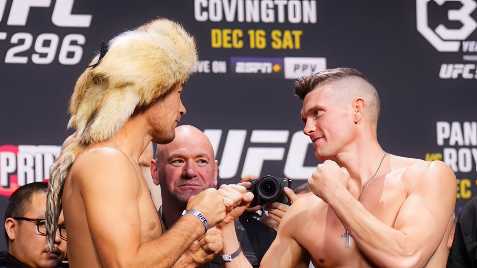 Битва взглядов Шавката Рахмонова и Стивена Томпсона / Фото: X/@TalenGuzman