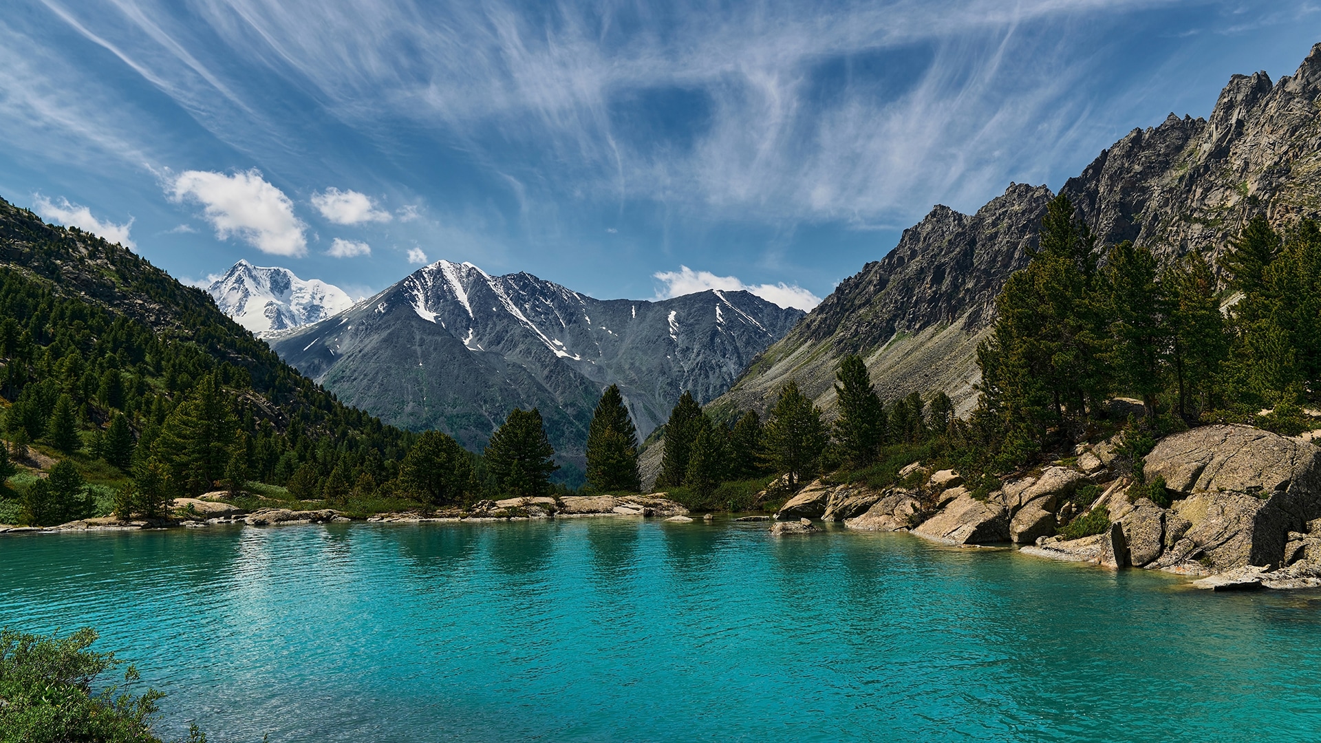 Одна из самых величественных вершин Казахстана. Снежные горы, туман и облака создают атмосферу настоящей силы природы и полного уединения.