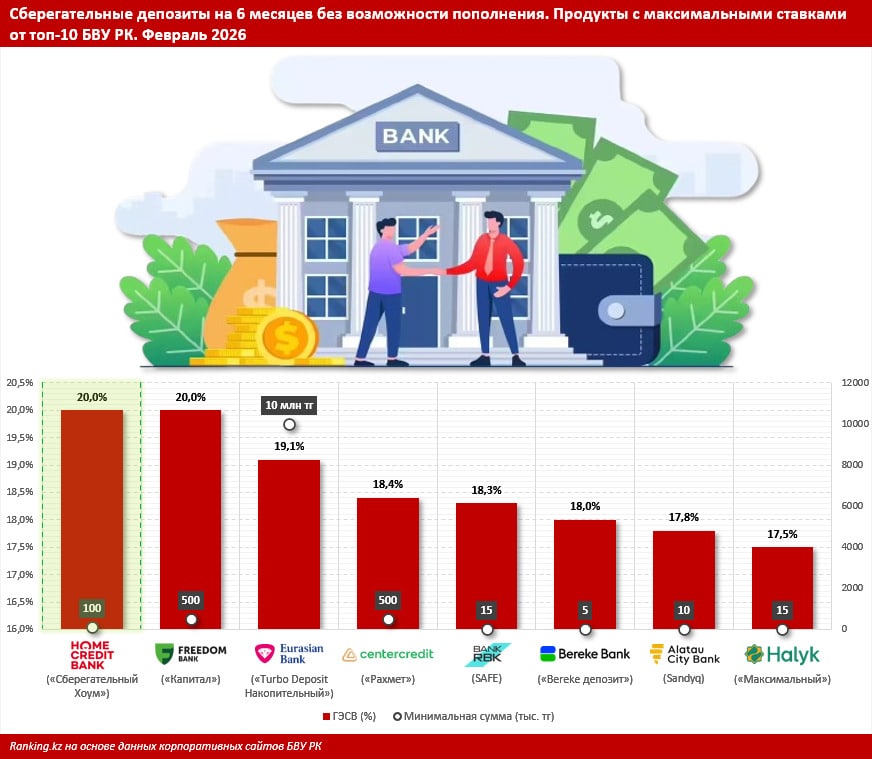 Аналитики отмечают, что сейчас – удачное время для фиксации высокой доходности. Напомним, 23 января 2026 года Нацбанк сохранил базовую ставку на уровне 18%. Следующее решение регулятора ожидается 6 марта 2026 года, и до этого момента банки, скорее всего, сохранят текущую привлекательность своих продуктов.