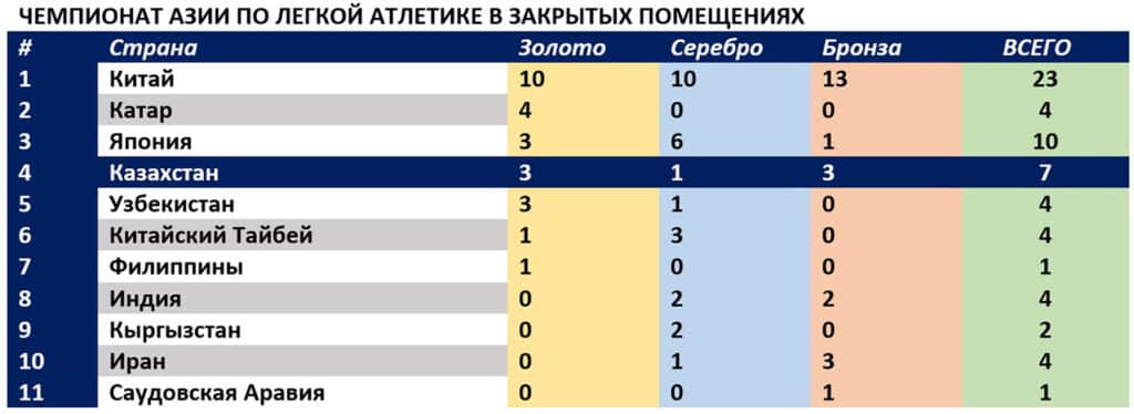 В заключительном виде программы чемпионата Азии по легкой атлетике в закрытых помещениях сборная Казахстана положила в копилку еще две награды. В эстафете 4х400 метров женская сборная завоевала золото, а мужская – бронзу.