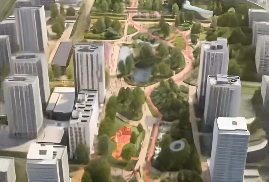 «В рамках концепции планируется благоустройство линейного парка за Музыкально-драматическим театром им. К. Куанышбаев. Также планируется реализация привокзального парка — важной городской территории, формирующей первое впечатление о столице», — отметили в центре урбанистики.