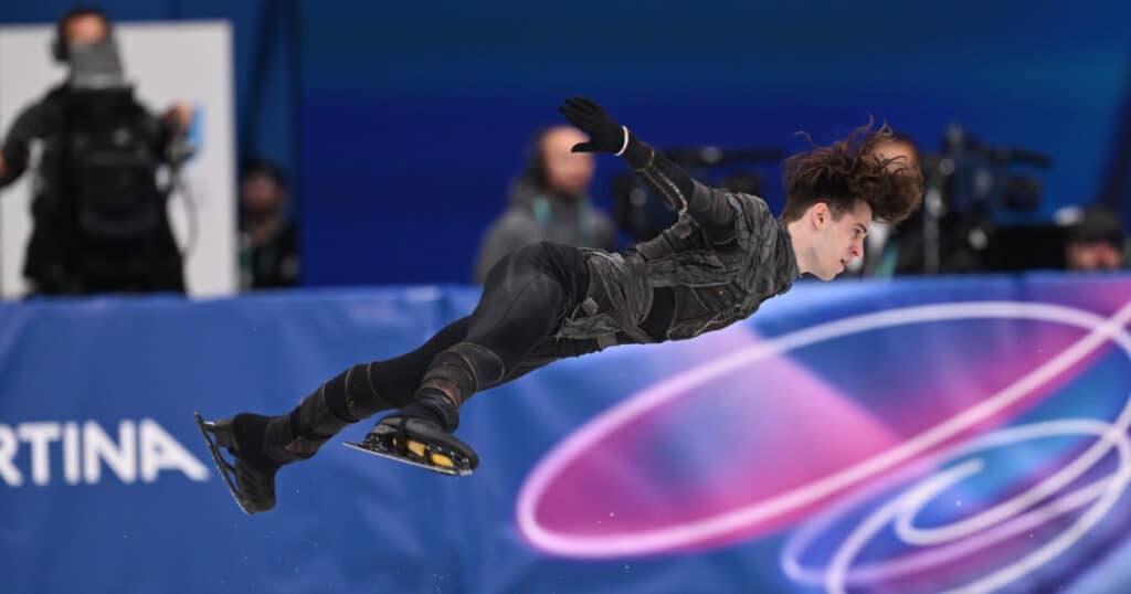 Фигурист Михаил Шайдоров в короткой программе на ОИ-2026 / Фото: Сали Сабиров/НОК РК