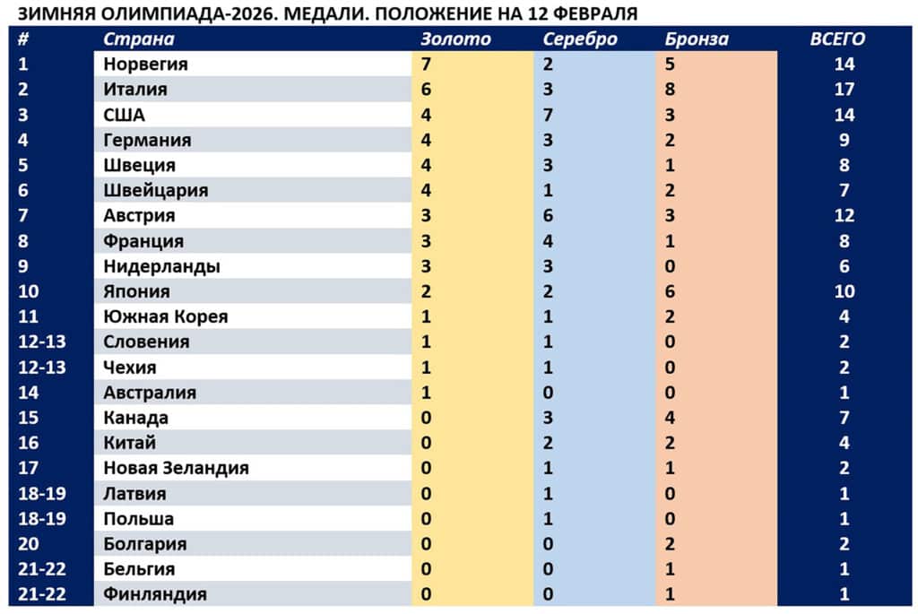 По количеству медалей хозяева Олимпиады опережают всех, а по золоту вплотную приблизились к Норвегии.