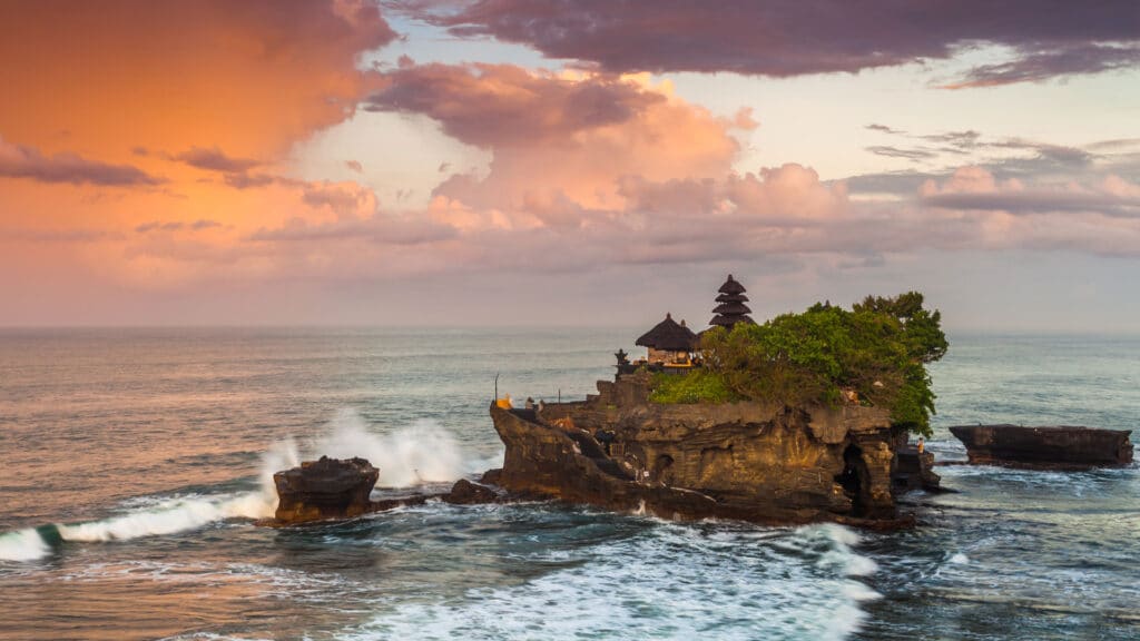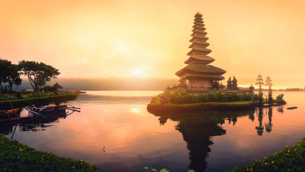 Эти храмы расположены на воде и у озера, они создают живописные виды, особенно на рассвете и закате. Танах Лот стоит на скале в океане, а Улун Дану — на берегу озера Братан среди гор. Добраться можно из Убуда или Куты примерно за 1,5–2,5 часа на машине.