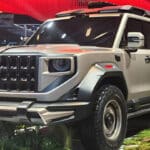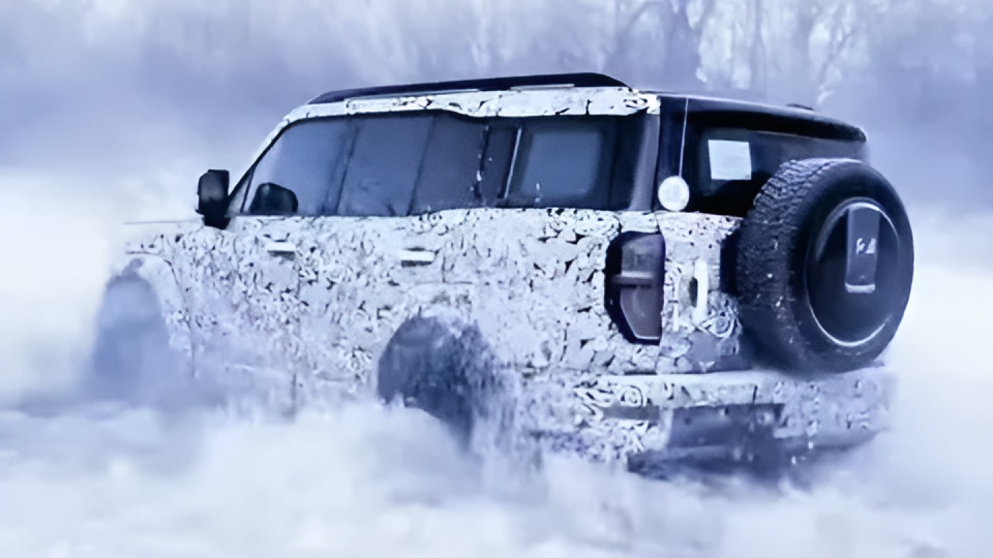 Прототип полностью скрыт камуфляжем, однако заметно, что автомобиль крупный, с прямыми формами кузова и выраженной внедорожной геометрией.