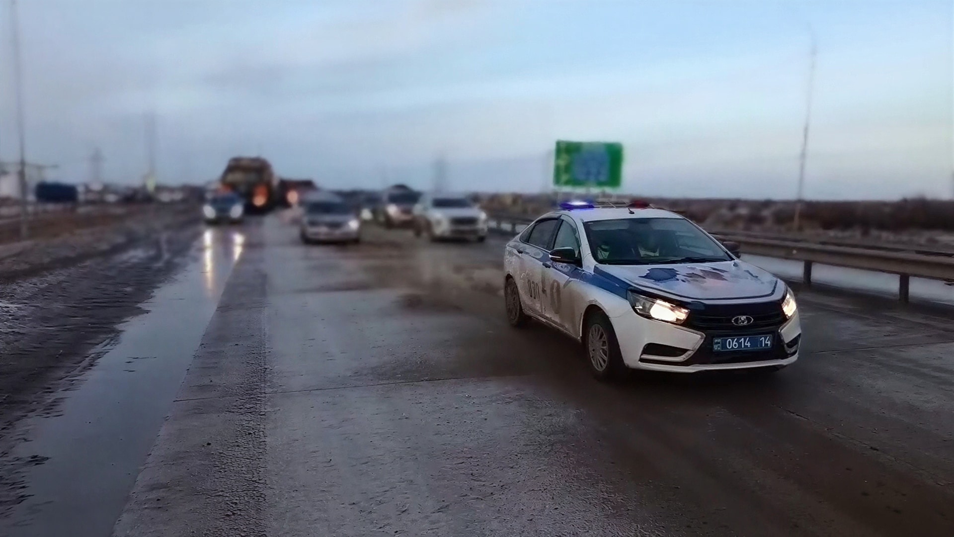 На направлении Экибастуз – Павлодар скопились десятки автомобилей. Чтобы не допустить ЧП, патрульная полиция организовала сопровождение колонн. В итоге за сутки полицейские вывели по заснеженным трассам более 200 машин.