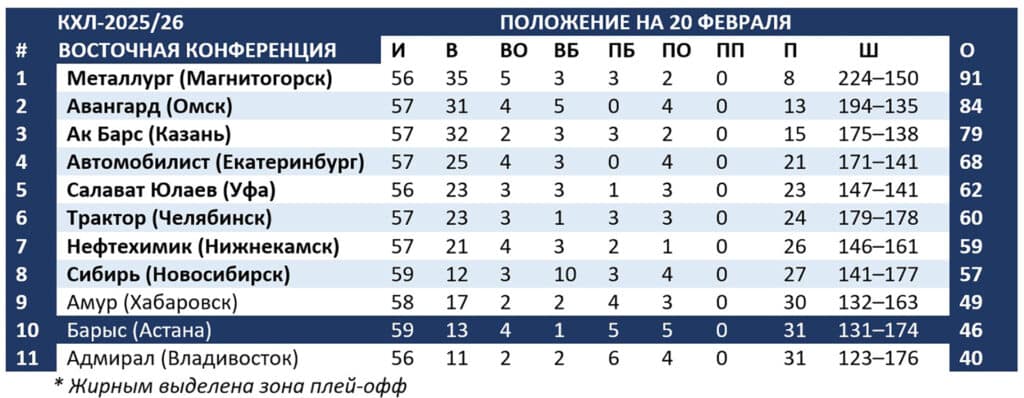 В чемпионате КХЛ-2025/26 принимают участие 22 клуба из России, Беларуси, Казахстана и Китая. Турнир, стартовавший 5 сентября, завершится не позднее 23 мая финальной серией плей-офф.