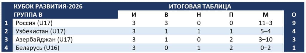 МЕЖДУНАРОДНЫЙ ЮНОШЕСКИЙ ТУРНИР КУБОК РАЗВИТИЯ-2026