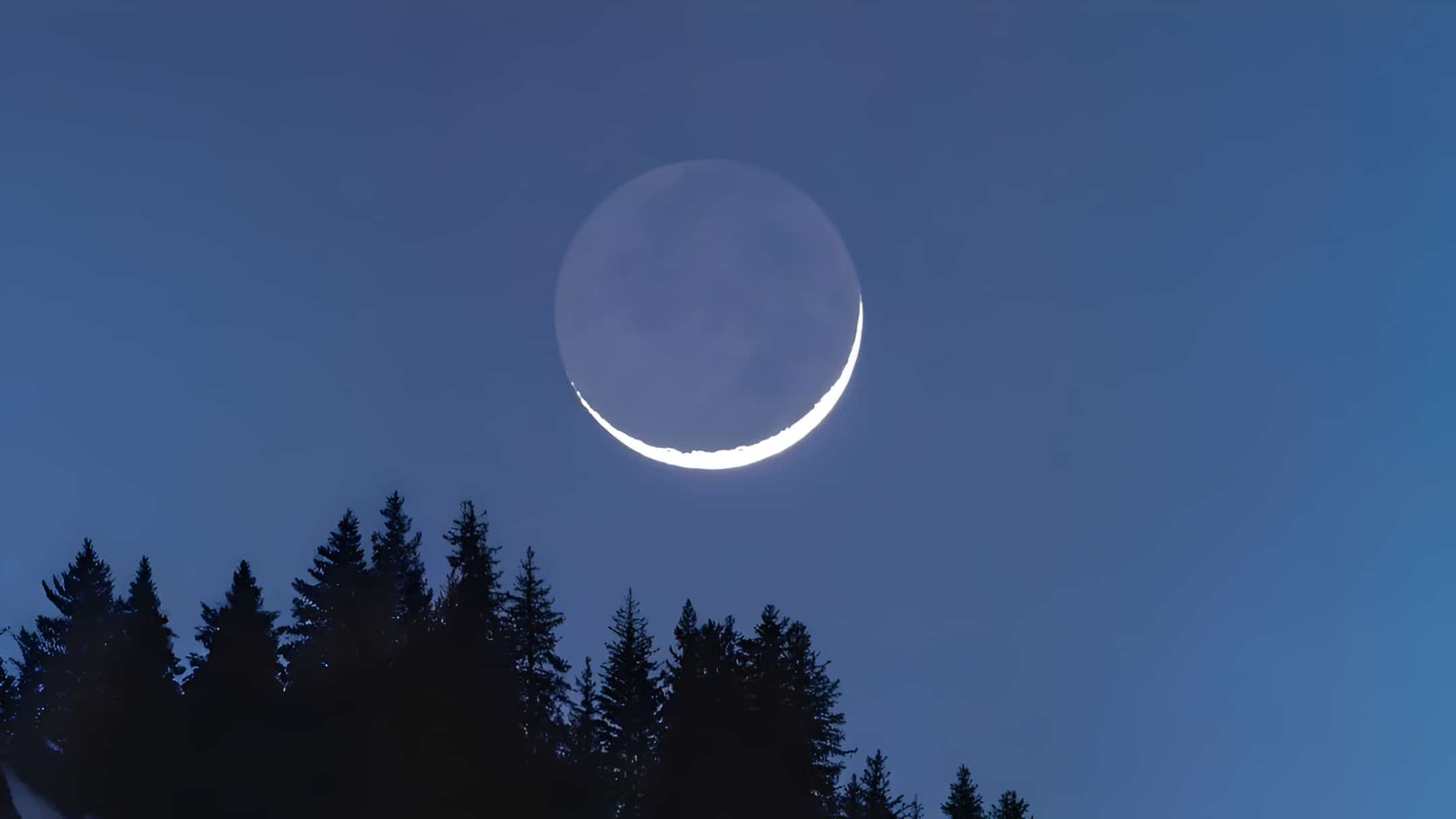 Популярный алматинский фотограф Дмитрий Доценко поделился видео с редким небесным явлением. На кадрах он запечатлел тонкий полумесяц, который появился над елями Заилийского Алатау в начале нового лунного месяца.