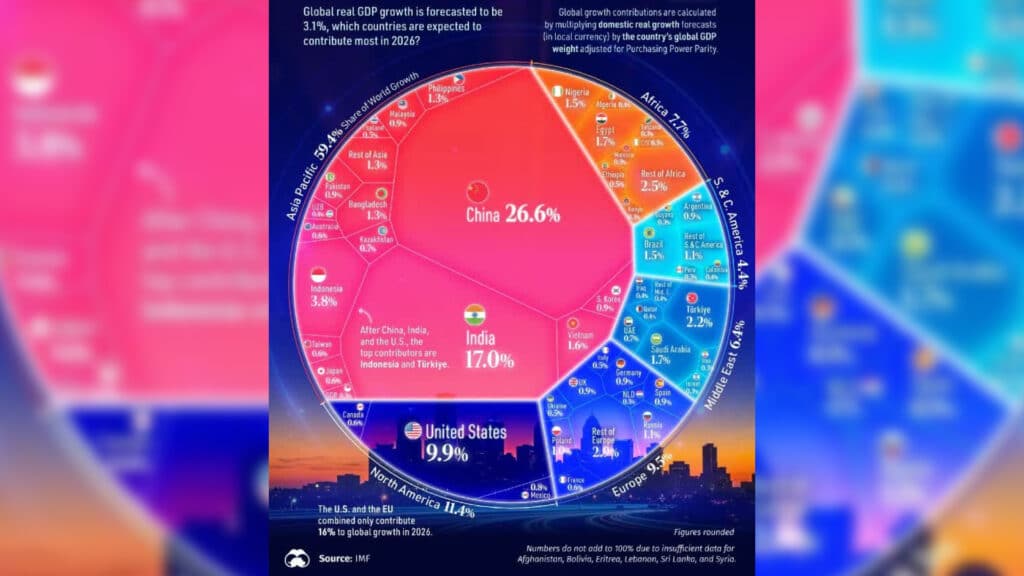 В 2026 году прогнозируется рост мировой экономики на 3,1%. Но кто обеспечит основной вклад в этот рост? Согласно прогнозу Международного валютного фонда (МВФ), главными драйверами мировой экономики станут Китай и Индия.