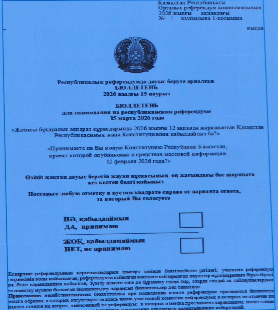 Согласно макету, бюллетень предназначен для голосования на республиканском референдуме 15 марта 2026 года.