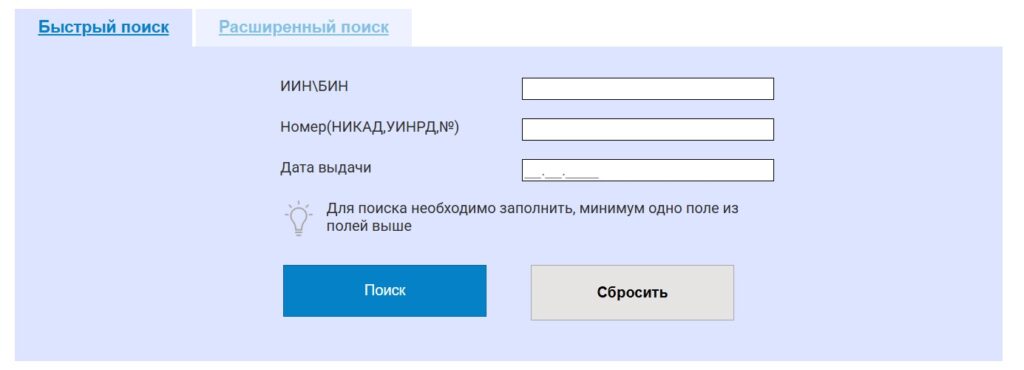 Проверить, есть ли у клиники разрешительные документы, можно самостоятельно на портале elicense.kz в разделе «Поиск разрешительных документов». Для этого нужно ввести БИН организации.