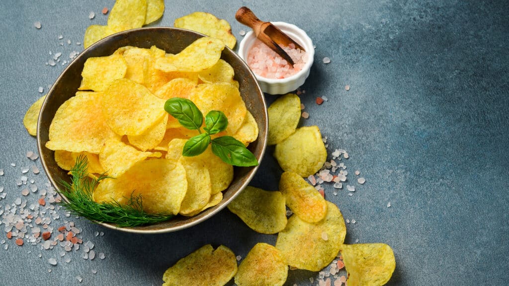 При этом некоторые «дефекты» теперь официально разрешены. Вздутия на пластинках — норма: они появляются, когда волокна картофеля лопаются от нагрева. Коричневые чипсы из-за карамелизации сахара допускаются, но не более 20% от массы в упаковке. Крошка — не более 25%.