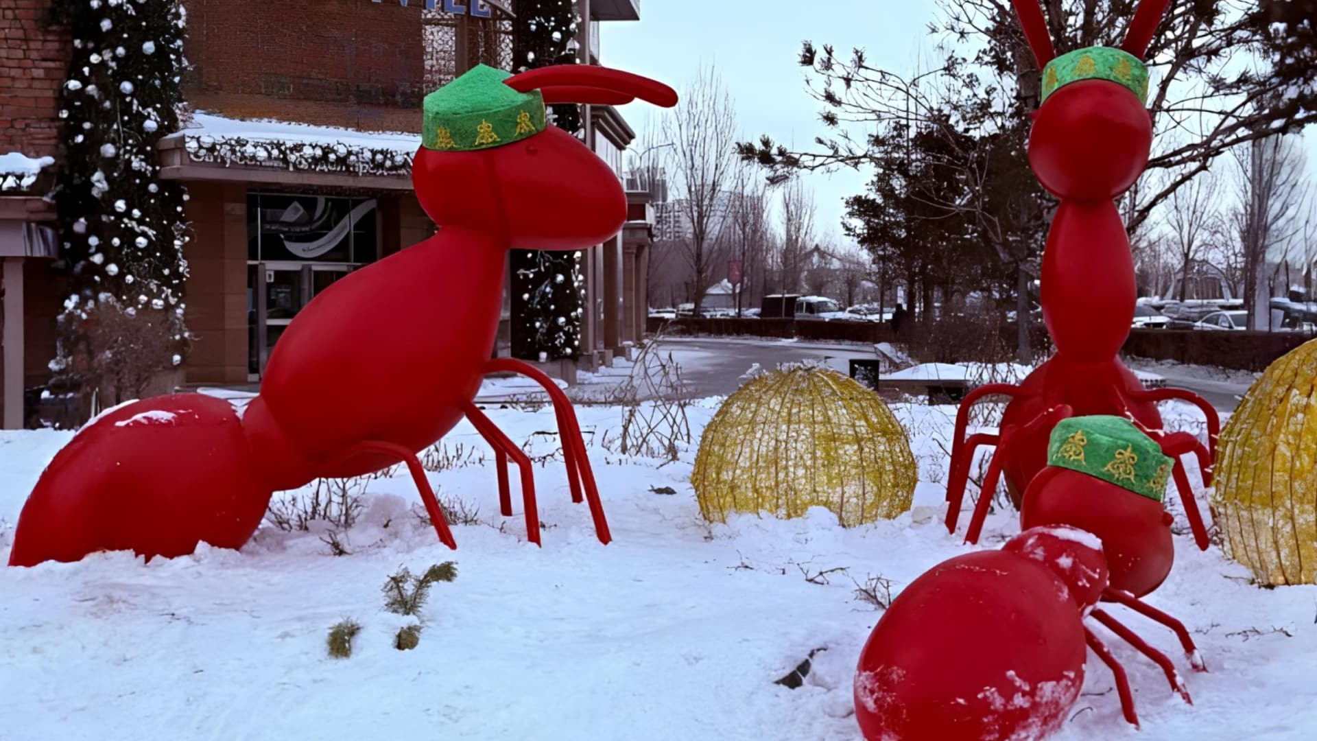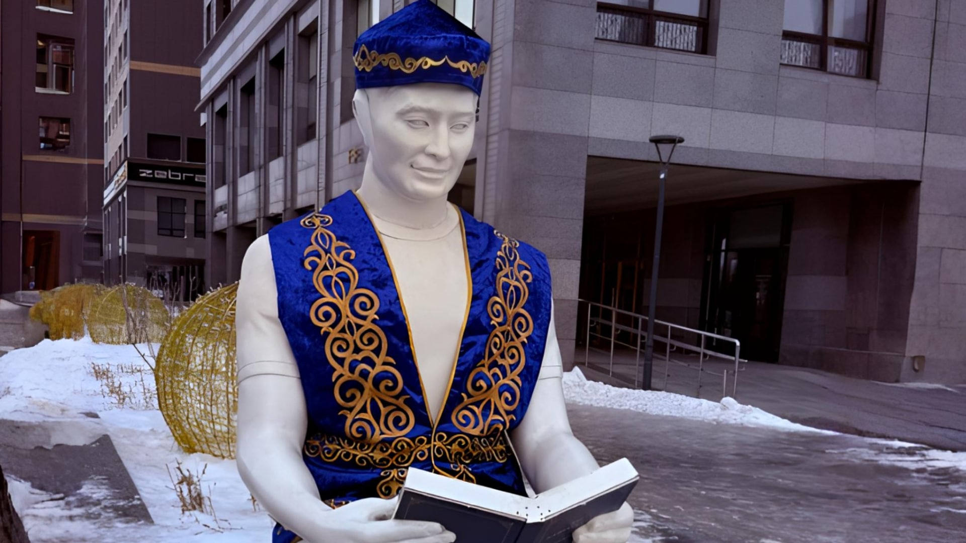 В Астане скульптуры нарядили к Наурызу, пока за окном все еще зима