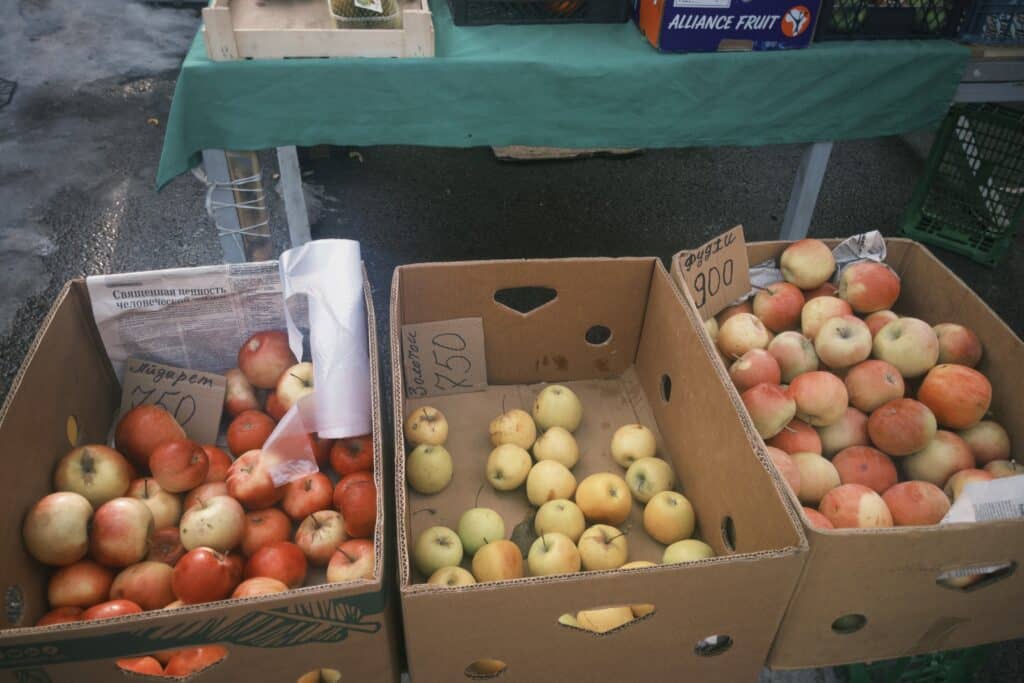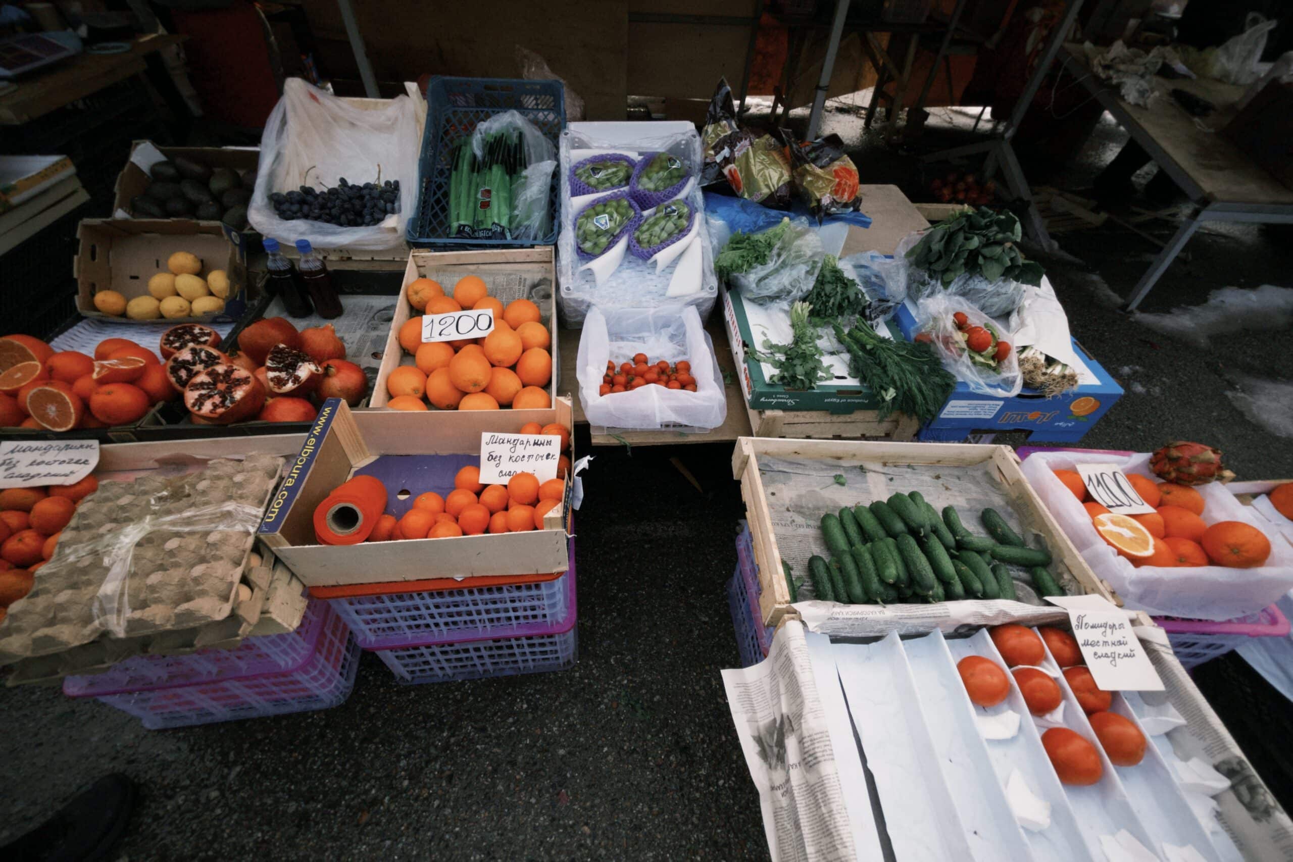 Цены на овощи и фрукты почти не отличаются от лавок у дома, а иногда даже проигрывают супермаркетам. Например, апельсины здесь стоят около 1 200 тенге за килограмм, тогда как в магазине их часто можно найти за 1 000 тенге, а на базаре – за 800. Однако никто не запрещает торговаться.