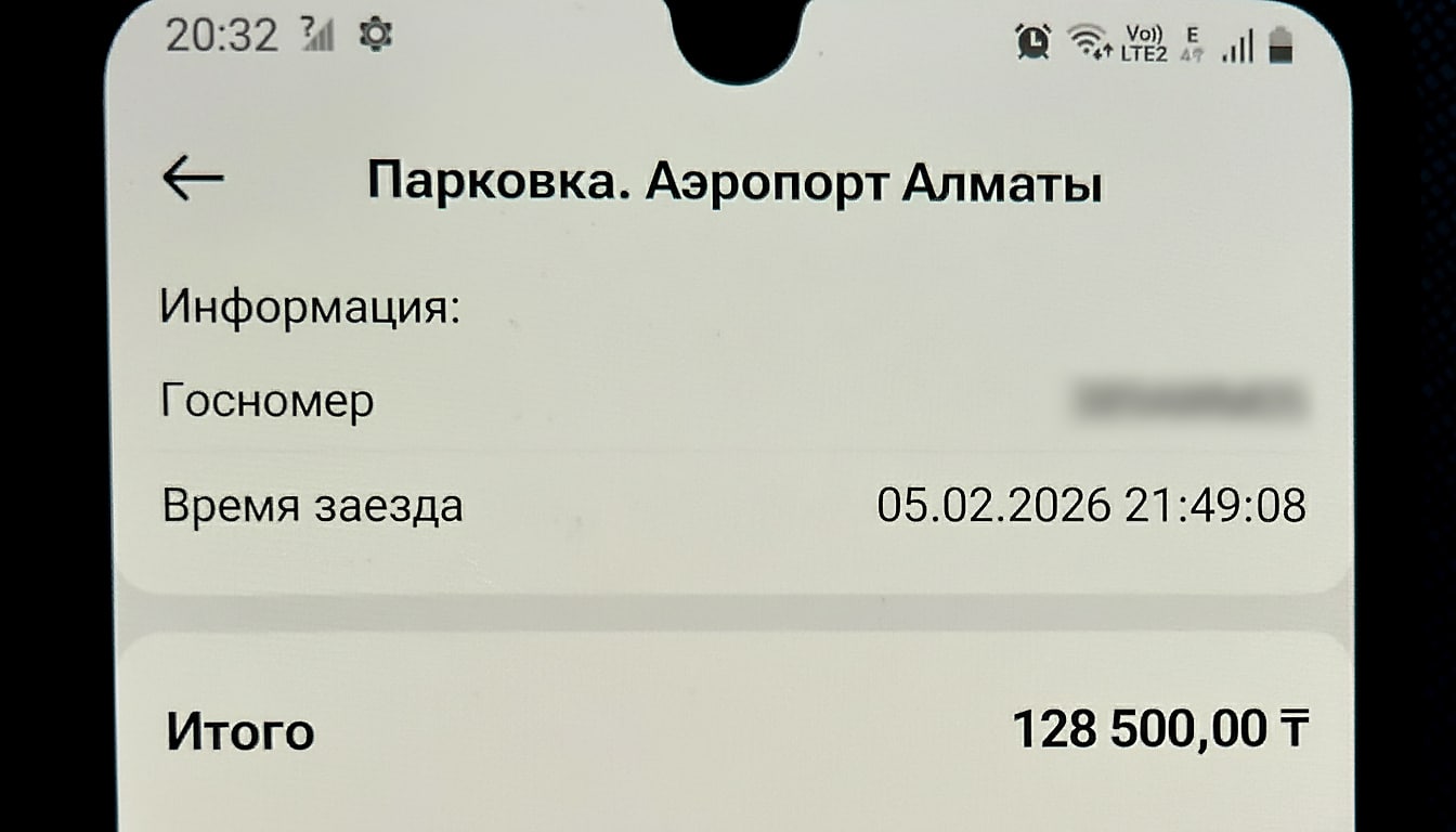 Пользовательница Threads под ником @mmatai__ рассказала, что получила квитанцию на 128,5 тыс. тенге за парковку в международном аэропорту Алматы. Инцидент произошел 5 февраля, когда девушка провожала сестру в Астану.