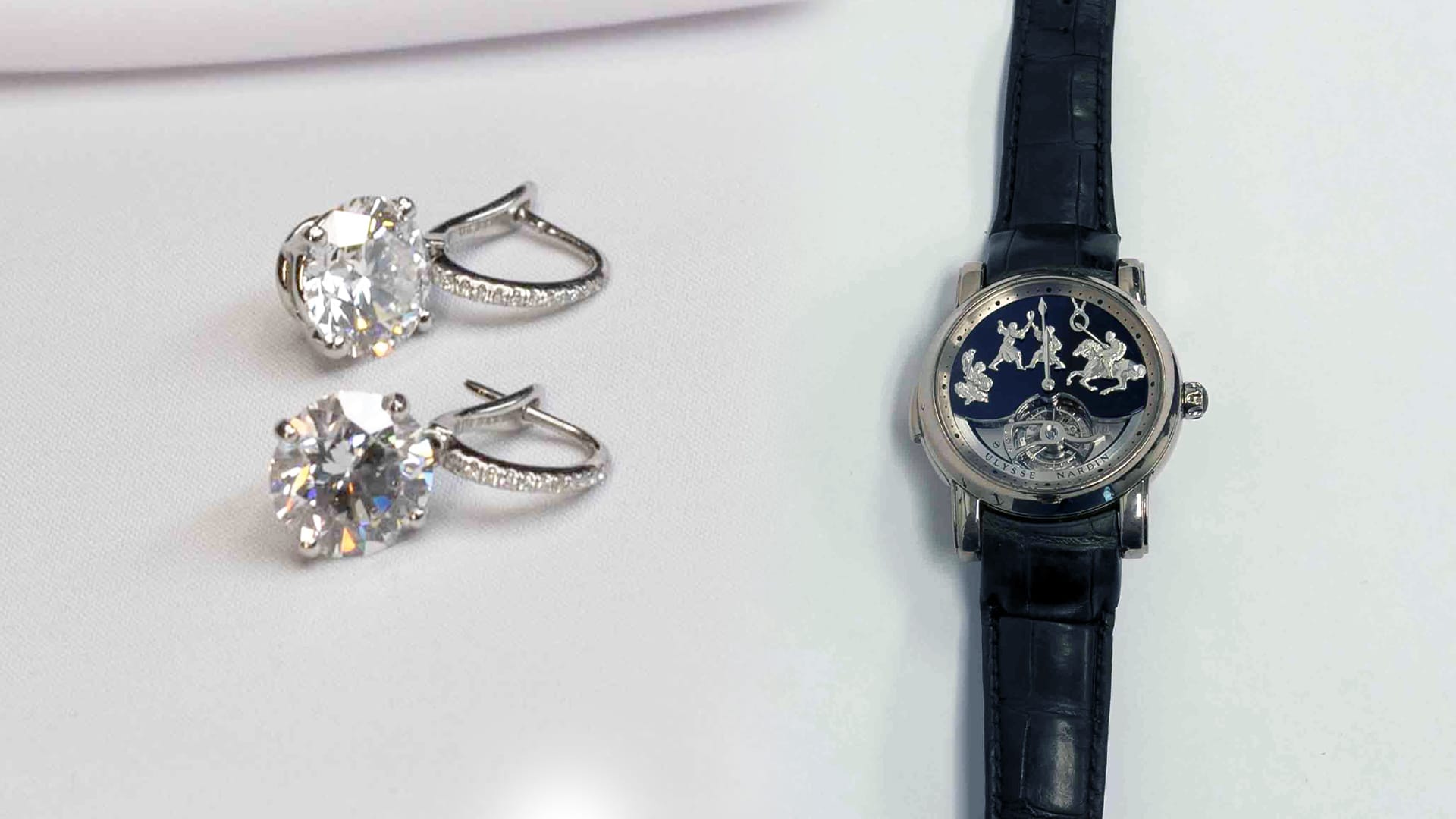 На электронной площадке продают дорогие часы швейцарского бренда Ulysse Nardin и серьги с крупными бриллиантами от De Beers. Лоты реализует Компания по управлению возвращенными активами (КУВА).