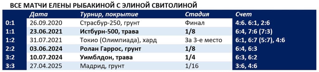 В полуфинале Рыбакина сыграет с украинкой Элиной Свитолиной (9), в 1/4 финала выбившей из турнира Игу Свентек (2) из Польши – 6:2, 4:6, 6:4. Взаимоотношения Елены с Элиной сложные – 3:3 в личных матчах. Причем Свитолина лишила казахстанку бронзовой медали Олимпиады в Токио.