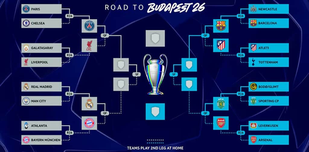 По регламенту Лиги чемпионов-2025/26 каждая из 36 команд сыграла в основном раунде по 8 матчей с разными соперниками. В 1/8 финала напрямую вышли восемь лучших клубов. Коллективы, занявшие места с 9-го по 24-е места, приняли участие в стыковых матчах за право сыграть в 1/8 финала.